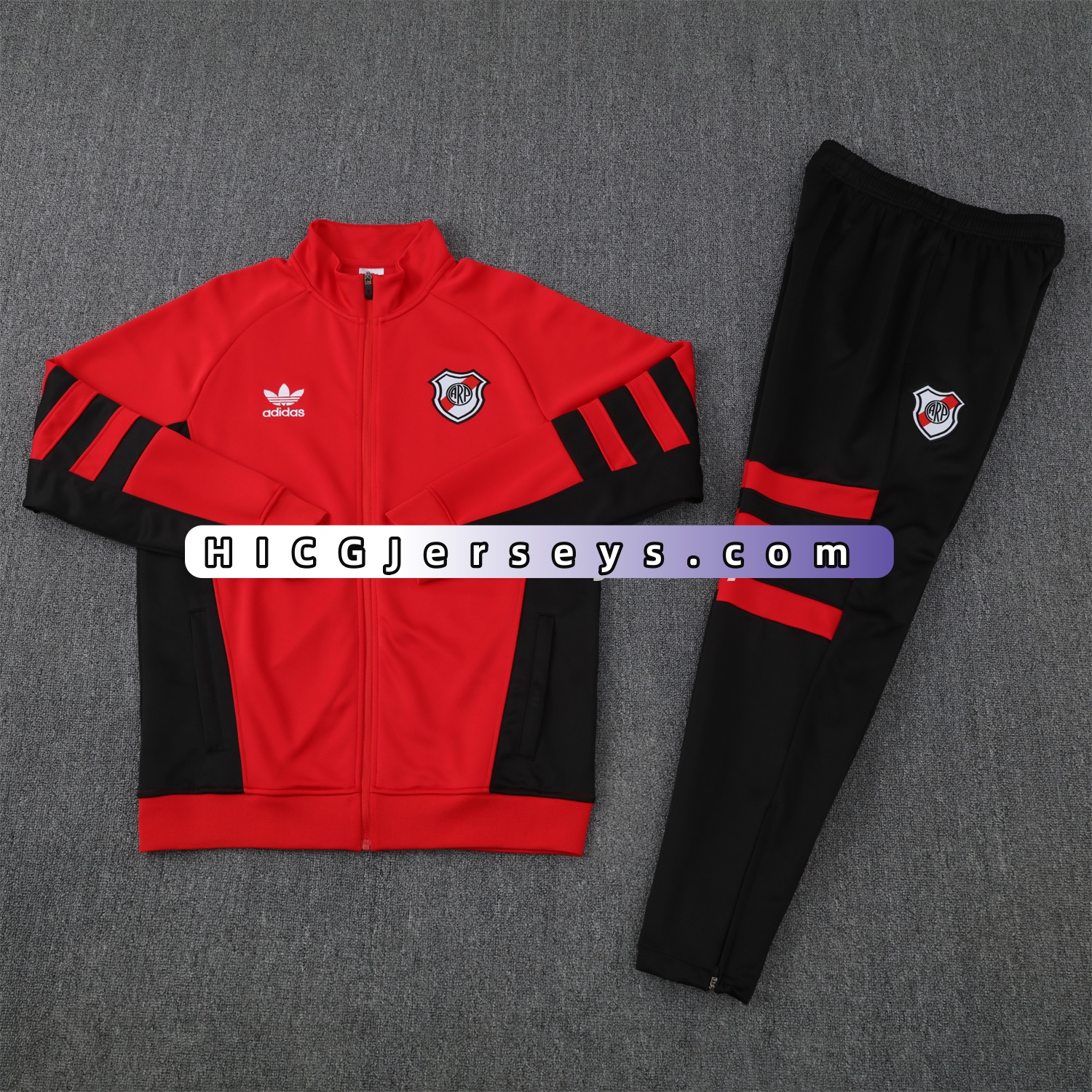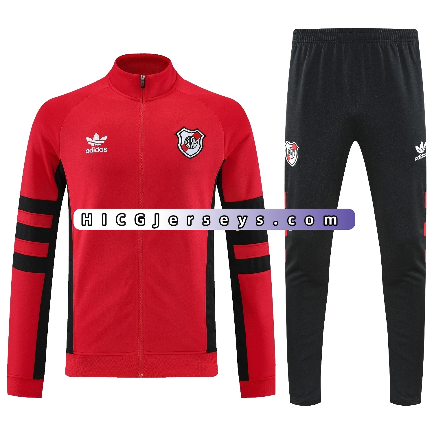 River Plate 25-26 Terrace Jacket Training Tracksuit - Red Jackets & Black Pants